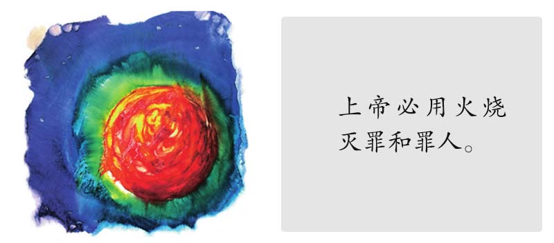 “那日临近,势如烧着的火炉,凡狂傲的和行恶的必如碎秸,在那日必被烧尽,根本枝条一无存留。”(玛拉基书4:1)“有火从天降下,烧灭了他们。”(启示录20:9)“那日,天必大有响声废去,有形质的都要被烈火销化,地和其上的物都要烧尽了。”(彼得后书3:10)“你们必践踏恶人,在我所定的日子,他们必如灰尘在你们脚掌之下。”(玛拉基书4:3)“但我们照他的应许,盼望新天新地,有义居在其中。”(彼得后书3:13)