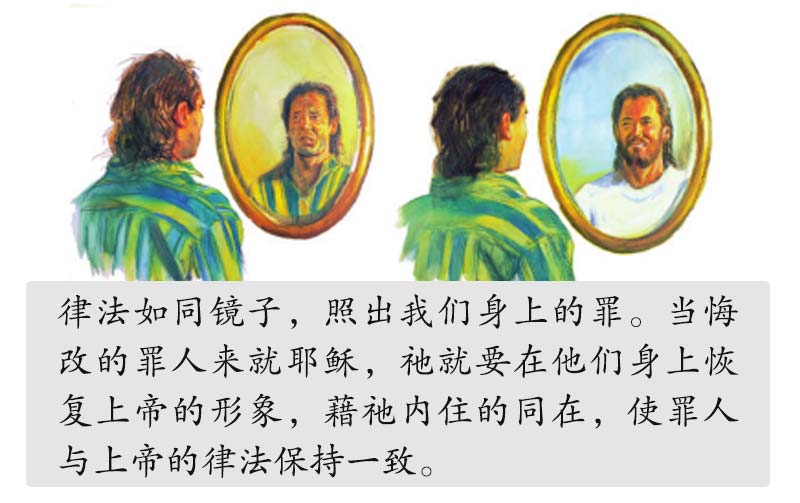 上帝的律法像一面镜子,(雅各书1:23-25)它指出我们的恶行,犹如镜子照出脸上的污点。人要知道自己是否犯罪,唯一可行的方法即藉上帝的律法仔细省察自己。在这混乱沉沦的世代,世人的希望只有在上帝的十诫中可以获得,它告诉我们是非善恶的分界线!
