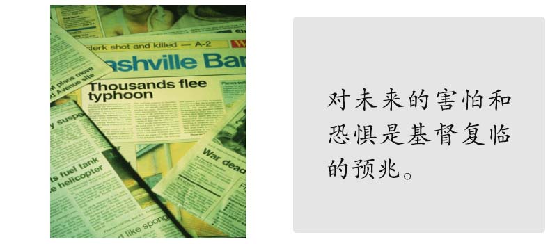 很奇怪,这听起来极像今日所报道的新闻。原因是:我们正生活在世界历史的最后关头。今日世界紧张的局势不会令我们惊讶,因为基督早已预言。这些事件令我们相信,祂来的日子近了。