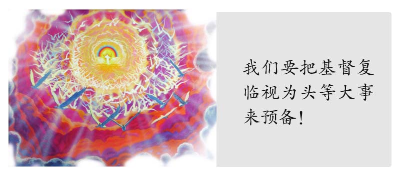 注:今日流行所谓秘密被提一说,这种说法没有圣经的依据,是人所发明的理论。基督的复临也不是所谓属灵的复临,只在人悔改时进入人心。基督复临不在人死时发生,也不是象征性的——象征人进入更美好的世界。这些理论都是人发明的。祂的复临是真实可见的,全球性的,是基督亲自驾云降临人间,给世界划上一个句号,照各人所行的,报应各人。
