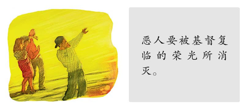 “以嘴里的气杀戮恶人。”(以赛亚书11:4)“……那时,主耶稣同他有能力的天使从天上在火焰中显现,要报应那不认识上帝和那不听从我主耶稣福音的人。”(帖撒罗尼迦后书1:7,8)“恶人见上帝之面而消灭。”(诗篇68:2)“其余的死人还没有复活,直等那一千年完了。”(启示录20:5)