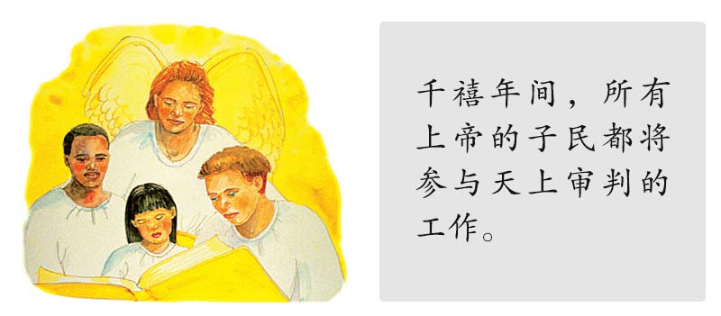 “我又看见几个宝座,也有坐在上面的,并有审判的权柄赐给他们。……他们都复活了,与基督一同作王一千年。”(启示录20:4)“岂不知圣徒要审判世界吗?……岂不知我们要审判天使吗?”(哥林多前书6:2,3)
