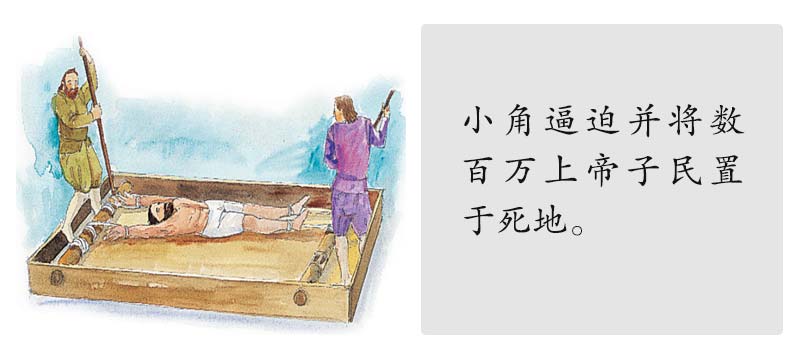 答案:小角代表罗马。有些人认为这个小角代表安提欧古四世(Antiochus Epiphanne),他是一位塞琉古王,在主前二世纪统治巴勒斯坦,并且打破了犹太人的崇拜仪式。而另一些人,包括宗教改革的领袖们都相信,小角代表罗马:异教罗马与教廷罗马两种形式。让我们一起在圣经中来查考这方面的证据: