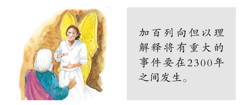 答案:加百列反复地断言2300日的异象牵涉到末日的事件。而末日始于主后1798年,正如我们在本书第15课所学到的一样。天使要我们了解2300日的预言,主要是针对生活在末世时代的人而说的。