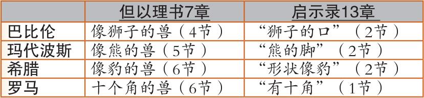 (2)它是由但以理书第7章四只兽组合而成。(启示录13:2)