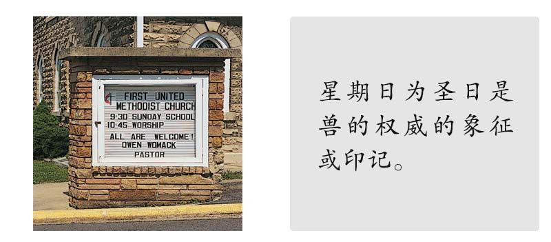 答:“教会若无此权力,就不可能使现代宗教人士同意与其一道,接受没有圣经根据的改变:以遵守七日的头一日来代替星期六——七日的第七日。”(司提凡?肯兰,《教理问答读本》第3版,第174 页。)请注意:罗马教廷在这里说是自己把星期日改为“主日”,而实际上所有的教会都接受了这个新的圣日。这样,罗马教廷声称“主日”为圣日,是自身权力与权威的印记或象征。