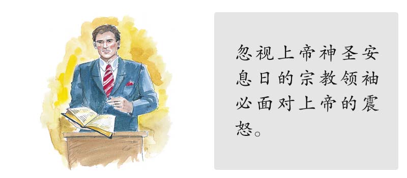 (7)上帝警告那些教导说圣物(例如上帝的圣安息日)和俗物(如礼拜日)没有实质差别的领导者。他们将要面对祂的烈怒。(以西结书22:26,31)