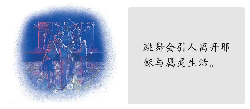 跳舞无可避免地引人离开耶稣及健康的属灵生活。当以色列人绕着金牛犊跳舞时,他们遗忘了上帝。(出埃及记32:17-25)当邪恶的希罗底的女儿在希律王面前跳舞时,施洗约翰的头就被斩了。(马太福音14:2-12)注意这些令人震惊的统计:纽约一位天主教神父说,向他承认犯了奸淫罪的女孩中,有四分之三把罪归到跳舞这件事上。其他神父则说四分之三太少了,他们估计是十分之九。记住,假如基督能与你一同参与这个活动,那就是安全的;假如不能,就要远离它。