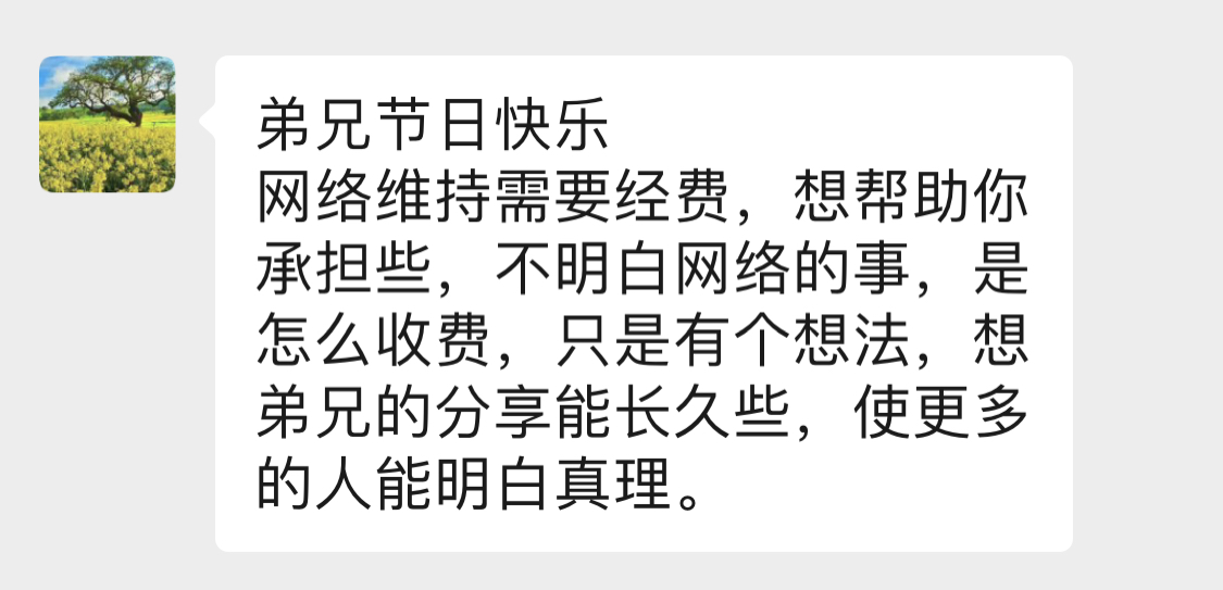 所以在我力所能及的情况下,坚持自给自足!只希望上帝祝福我们赐予智慧可以从世上获取收入能力才是根本解决之路。不想让弟兄姊妹们因捐献成为学习的门槛困扰或压力!我们唯一要求的是您若喜欢我们的网站,愿大家都能彼此分享传播,这个网站不是我一个人的,而是属于大家共同学习的平台,正因为有大家的存在,也才能体现启示网存在的价值与意义!